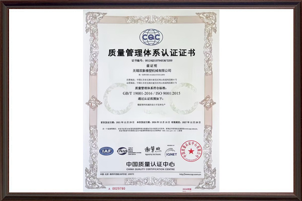 質(zhì)量管理體系認(rèn)證證書(shū)(ISO9001:2015)