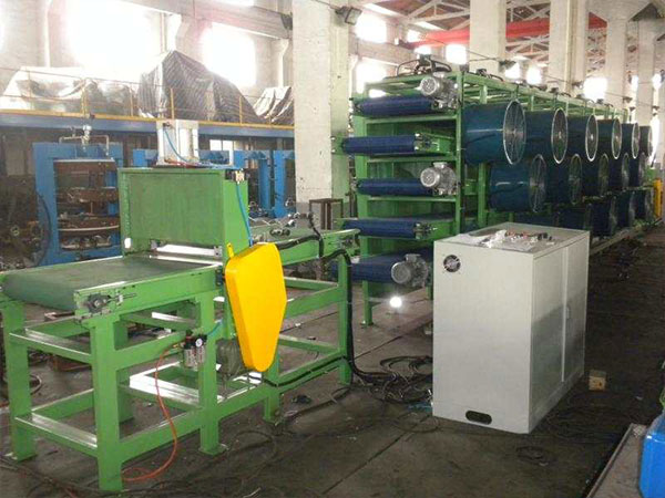 主要用作密煉機的下輔機,與密煉機、擠出壓片機、開煉機配套使用,將膠片涂隔離劑、冷卻干燥,然后疊片存放。