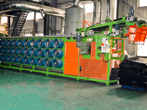 主要用作密煉機(jī)的下輔機(jī),與密煉機(jī)、擠出壓片機(jī)、開煉機(jī)配套使用,將膠片涂隔離劑、冷卻干燥,然后疊片存放。